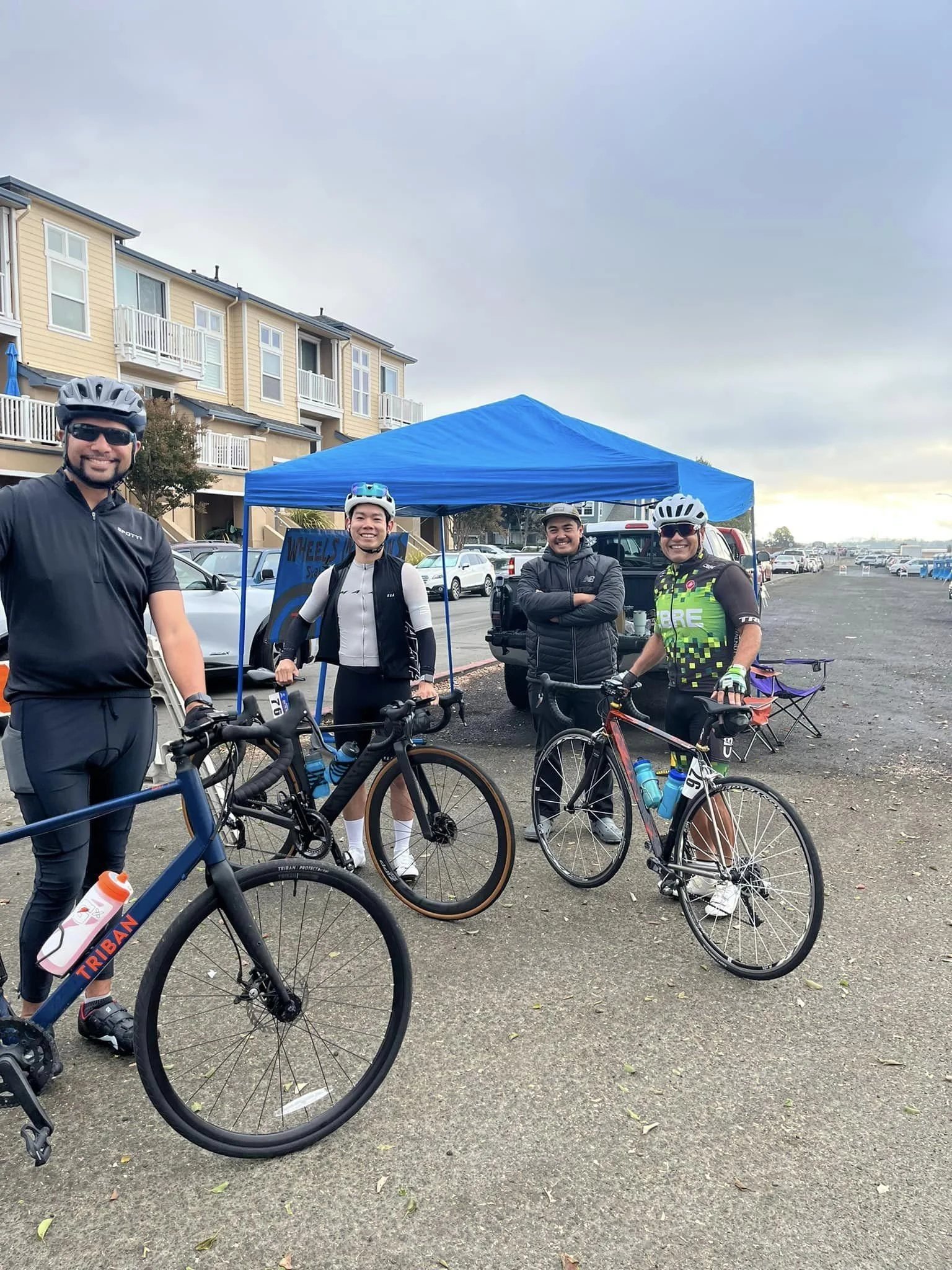 On Thursday, May 25, 2023, the BBC decided to test out the new 3-Bridge SF Bay route with a few intrepid riders: Peggy and John Ericson, Dylan Powell, Marvin Ruiz, Scott Overfield, and Kathy Nelson.